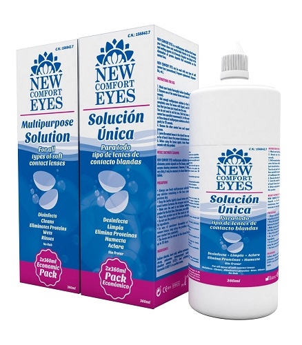 New Comfort Eyes es una solución única que mantiene limpias y confortables sus lentes debido a la presencia de agentes limpiadores y humectantes en su formulación. El uso continuado favorece la eliminación de los depósitos de proteínas que se acumulan en la lente de contacto.